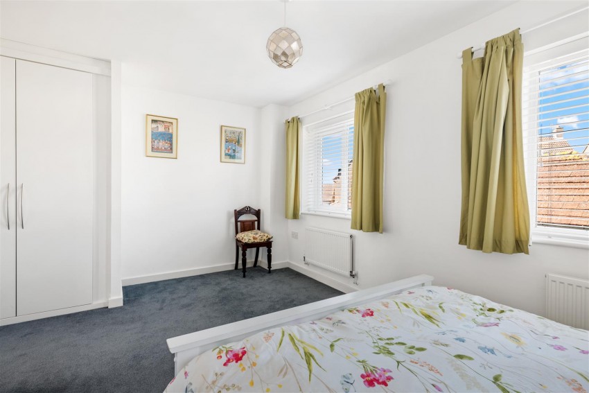 On the ground floor the entrance hall leads to the kitchen/breakfast room which features a built in fridge/freezer, space for washing machine and dishwasher and a large bay window. The sitting room features French doors which open out to the garden, and you also have a useful downstairs cloakroom.
